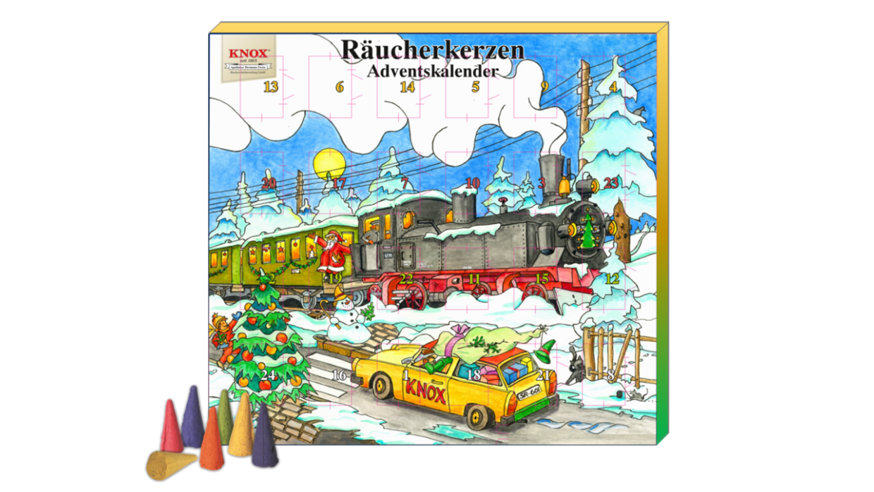Da leuchten nicht nur die Augen von Eisenbahnfans: Mit dem KNOX-Räucherkerzen Adventskalender 2026 erscheint erneut ein neues Motiv des beliebten Klassikers. Das Motiv „Eisenbahnromantik“ begeistert mit einem nostalgischen Design und ist eine duftende Alternative zu herkömmlichen Schokoladen-Adventskalendern. Hinter jedem der 24 Türchen verbirgt sich ein anderer Duft aus der vielfältigen KNOX-Duftpalette, der Tag für Tag für Duftmomente in der Adventszeit sorgt.