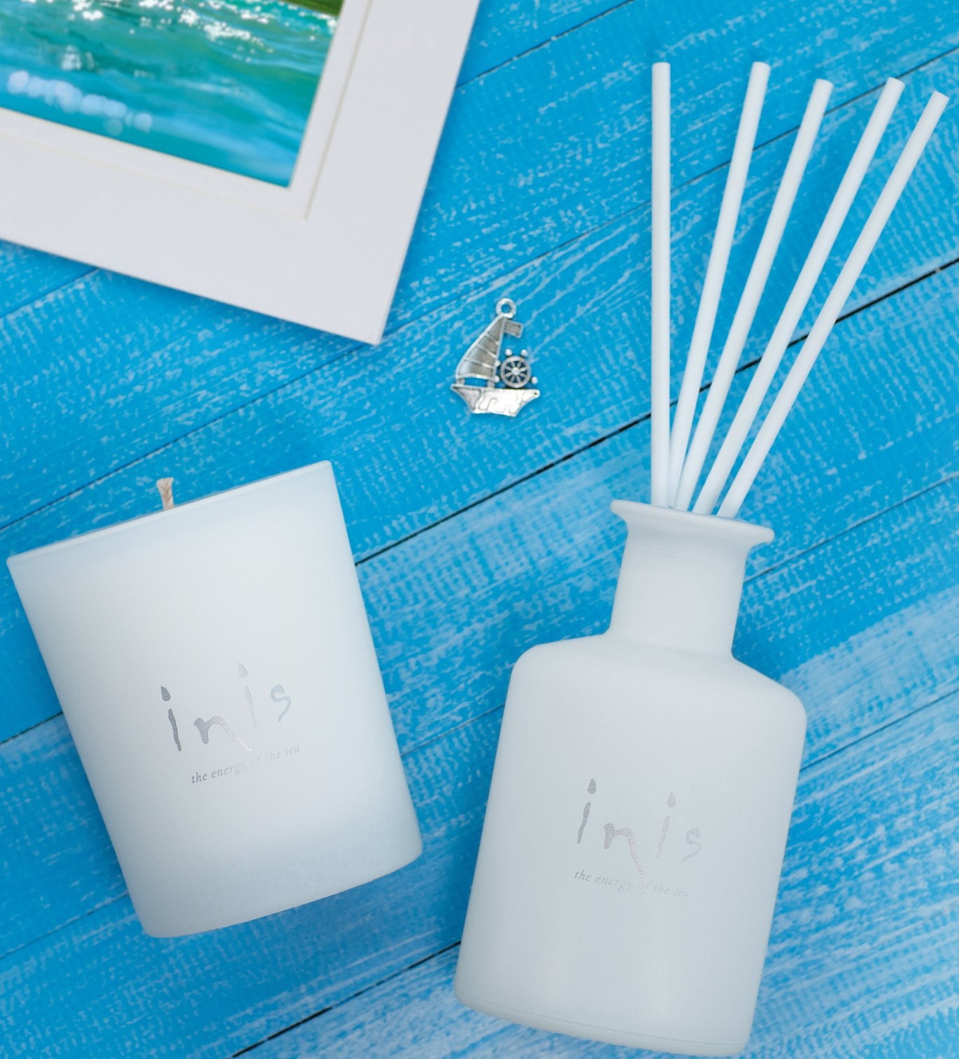 Mit einem Duft so erhebend wie ein sonniger Tag am Meer verschönern unsere Raumduftartikel jeden Raum des Zuhauses mit dem vitalisierenden Duft von Inis the Energy of the Sea. Als entzückendes Geschenk ergänzt die zurückgenommene Formgebung des gläsernen Diffusergefäßes und der Kerze jede Inneneinrichtung.